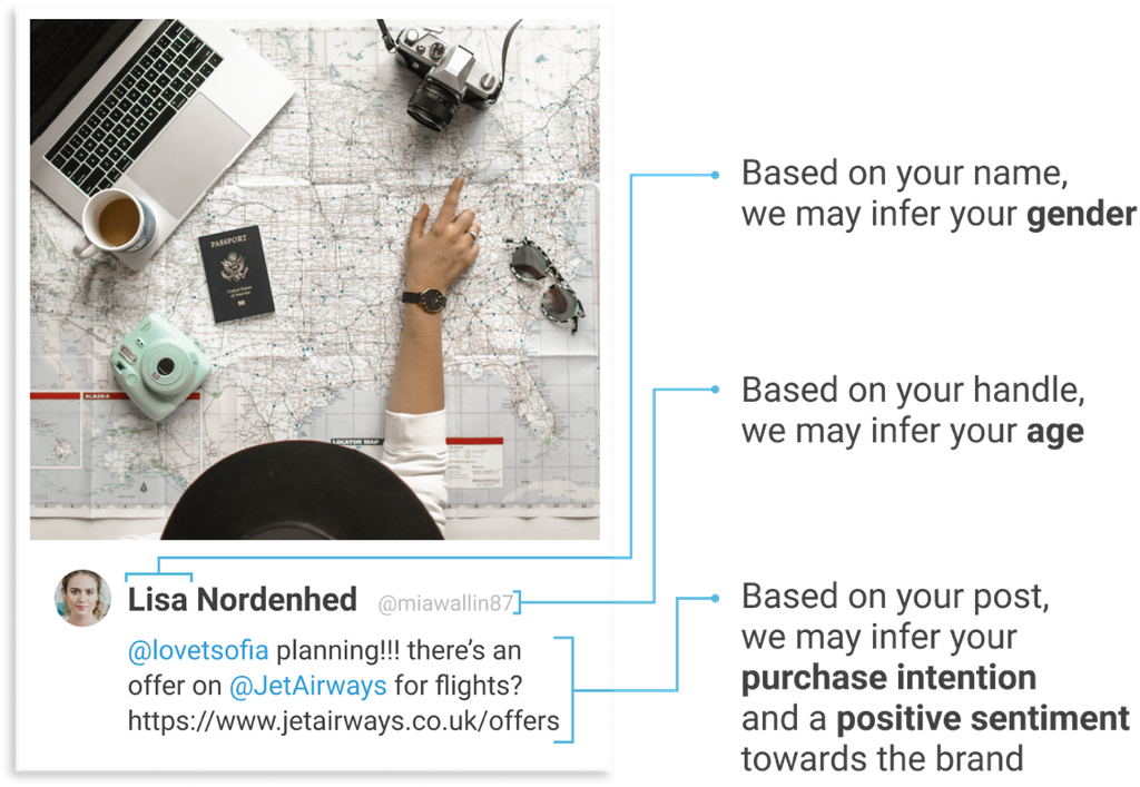 When we infer data about you, we do so automatically, based on each individual post. We do not look at multiple posts in combination, and our algorithms analyse each of your posts individually.