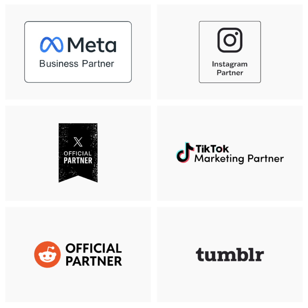 Officiële en compliant toegang tot data door onze directe partnerships met Twitter, Reddit, Tumblr, Facebook, Instagram, TikTok en nog veel meer.