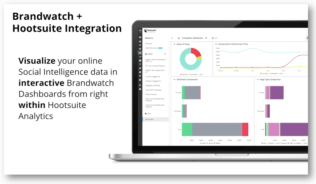 Unifying the power of Brandwatch and Hootsuite Analytics allows you to visualize your brand perception and gain insight on your social performance, your competitor actions and trends developing in your market – all within the Hootsuite dashboard.