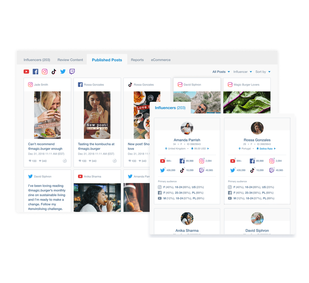 Leverage influencer marketing across TikTok, Instagram, YouTube, and more.