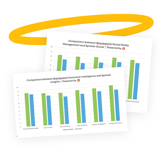 Based on real consumer reviews on G2, users rate Brandwatch's offerings for Social Media Management and Social Listening above Sprinklr’s solutions across key categories.