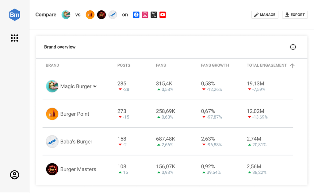 You never compete in a vacuum. With Benchmark, you can compare your brand to competitors and industry leaders to build a winning social strategy.