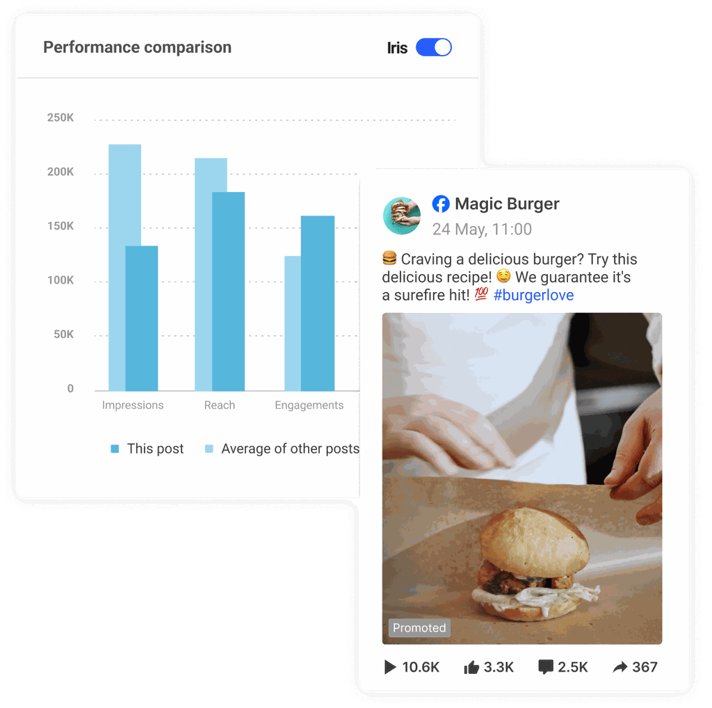 Let Iris AI uncover detailed analyses of your posts' performance for you. Get a quick idea of how your post stacks up against the rest and get summaries of conversations unfolding in the comments.