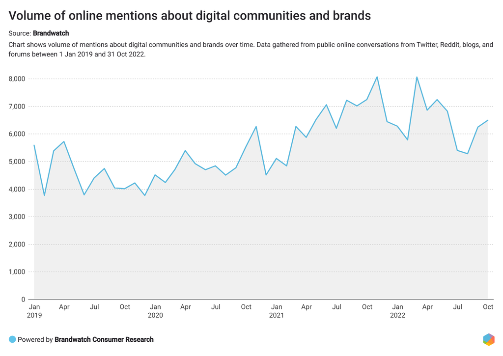 A look at the online conversations around communities and niche platforms shows that, between 1 January and 15 November 2022, the number of individuals talking about the topic increased by 6% compared to last year.