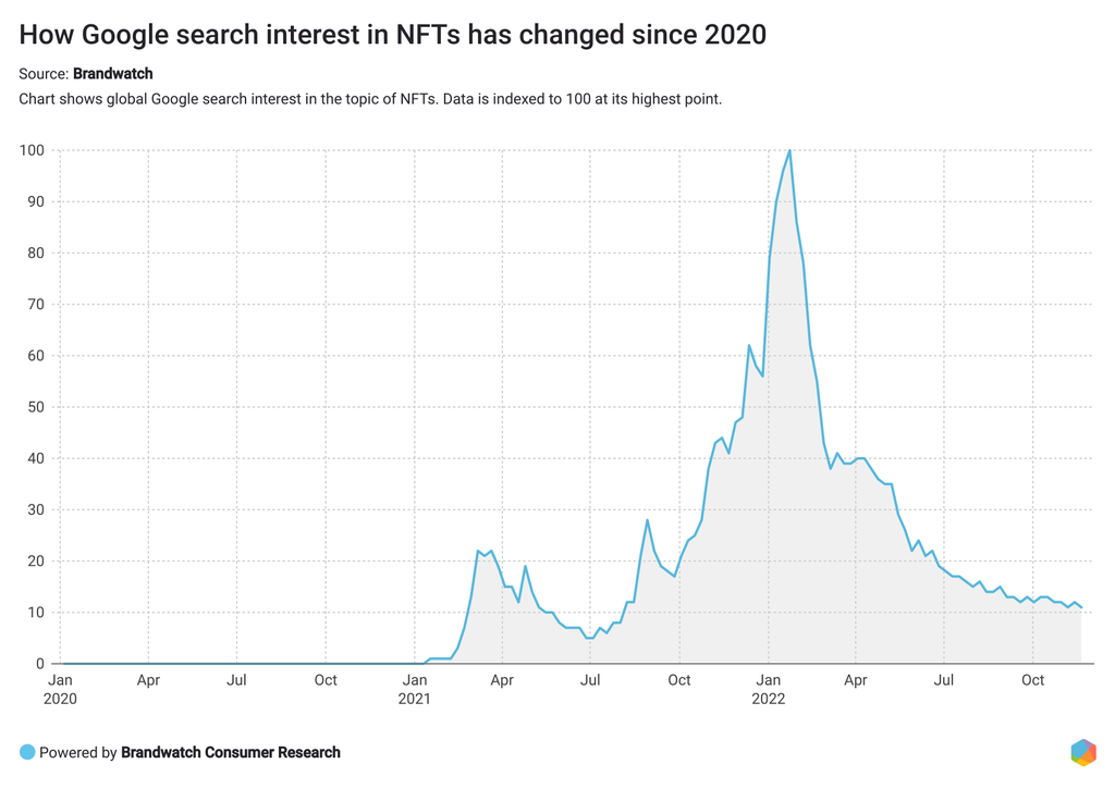 All that said, if we look at the search data around NFTs, it seems like consumer interest in the topic has already reached its peak and searches are in decline.