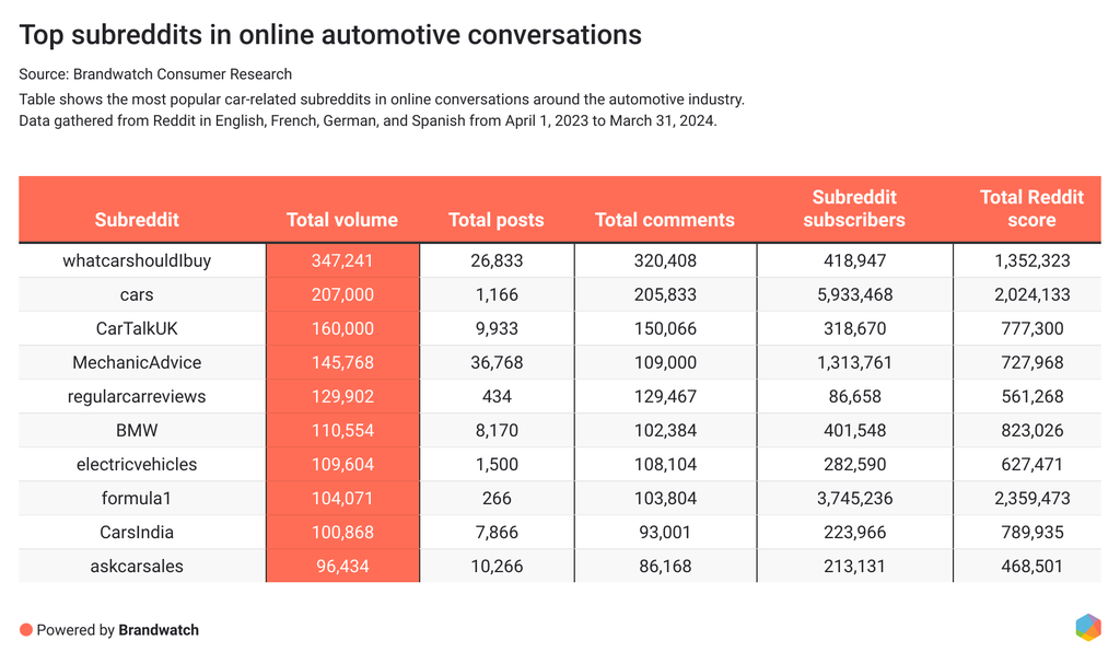 Reddit is a huge platform for consumers to discuss cars on, and they turn to it for advice and recommendations. The most popular car-related subreddits are about getting recommendations on which car to buy, getting advice from mechanics, or reading reviews.