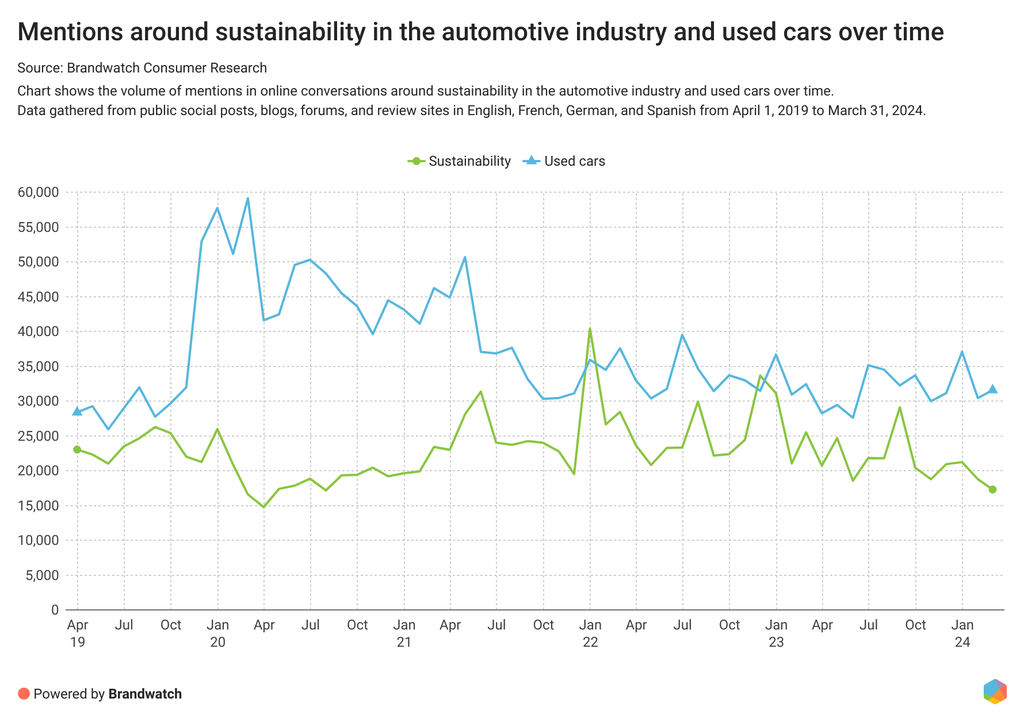 Looking at data from different regions, there are some interesting differences in how consumers talk about sustainability and used cars: