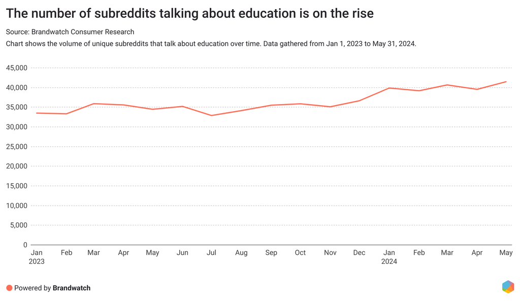 And the number of conversations about education is growing across subreddits.
