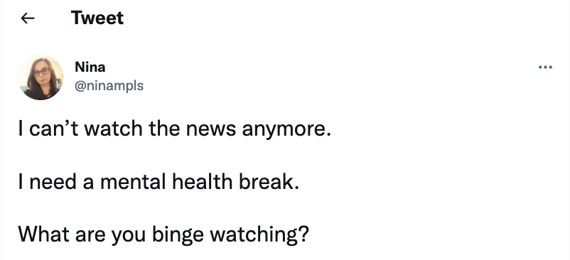 Over two years since the beginning of the pandemic, and with the current economic and political climate, consumers are longing for feel-good media. And to confirm this, one of the recent NY Times articles came out with a bold headline, “The News Is Making People Anxious.” The consumer below expresses exactly that in a tweet: “Lord have mercy, I’m tired of all the negative news…”