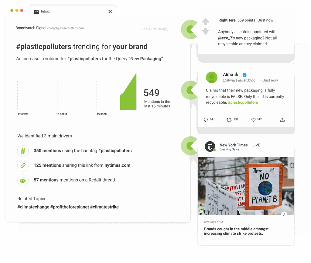 Detect potential crises early and prevent them escalating with alerts that automatically sense unusual activity related to your brand |
