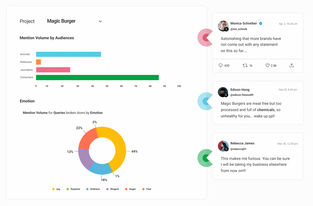 Understand the reaction of key audiences to predict and mitigate damage to your brand reputation |